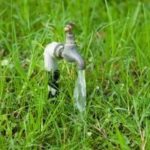 Outdoor plumbing faucet with water flowing, surrounded by lush green grass, representing exposed plumbing fixtures in need of festive decoration ideas.Many pipes can be found on the outside of your home that really stands out. One of the easiest ways to decorate them is to cover them with lights to match the rest of your outdoor lighting decor. You could also decorate them as if they were candy canes.